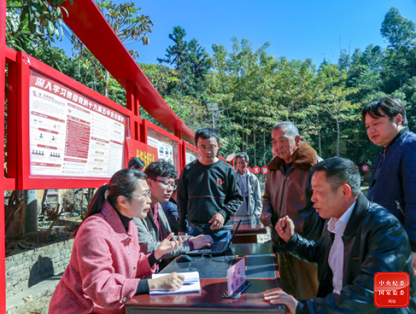 福建省仙游县纪委监委聚焦侵害群众利益的腐败和作风问题,在全县18个乡镇(街道)建立流动接访点,通过开展接访听民意、察民情,切实维护群众利益。图为1月21日,该县纪委监委干部在龙华镇红旗村接访。吴震 摄