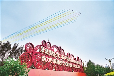 2021年7月1日,庆祝中国共产党成立100周年大会在北京天安门广场隆重举行,飞行编队飞过北京上空。(图片来源:人民视觉)