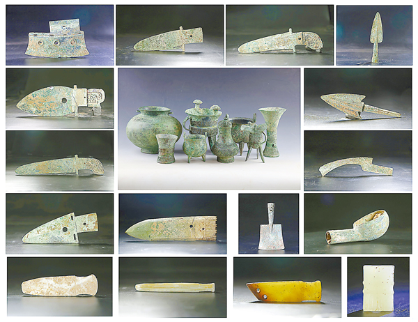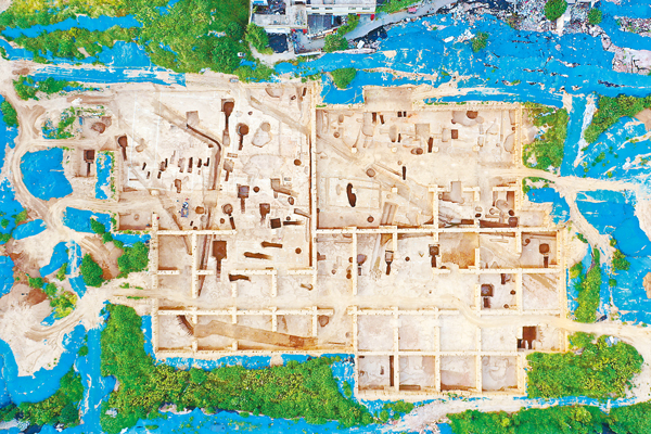 考古人员还在邵家棚商代晚期聚落遗址发现了由18座房址组成的3组多进式院落,以及由1座“中”字型大墓、23座中小型墓葬和4座车马坑组成的墓地,出土刻“册”字铭文的多件青铜器,显示这里可能为晚商时期史官“册”族居住地。