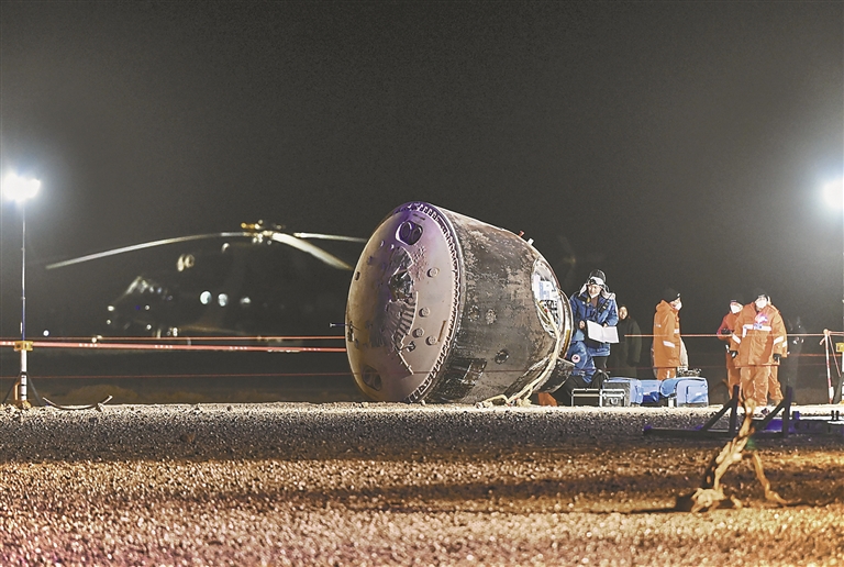 “北斗”也在“暗中助力”。基于我国北斗导航系统在着陆场的应用,天基、空基、地基弹道测量数据被送往搜救直升机,建设了天空地一体化搜索引导体系,还研制了国内首款共口径、长焦距、柱型直升机光电吊舱,调配具有微光、红外功能的小微型光学设备在地面布阵,提升夜间搜索发现返回舱的能力。