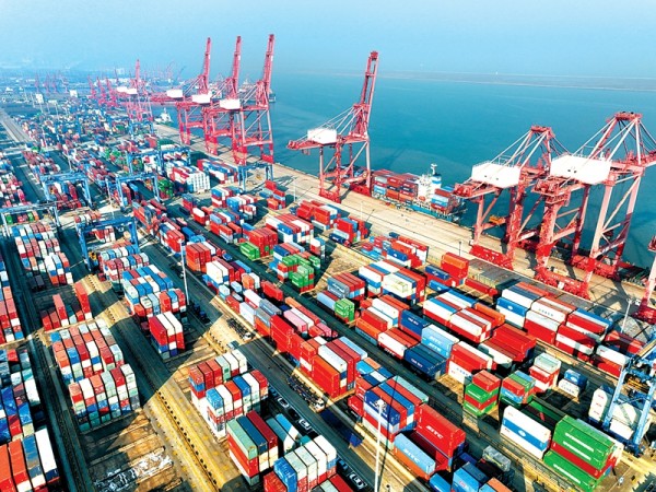 我国前11个月外贸进出口保持稳定增长,图为江苏连云港港集装箱码头装卸作业区。 新华社发(王春 摄)
