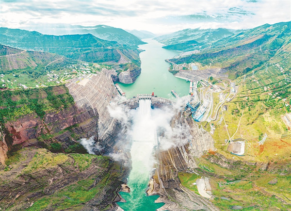 12月20日,金沙江白鹤滩水电站9号机组顺利完成72小时试运行,正式并网发电。至此,白鹤滩水电站16台百万千瓦水轮发电机组全部投产发电。图为白鹤滩水电站全景面貌。谢雷 摄