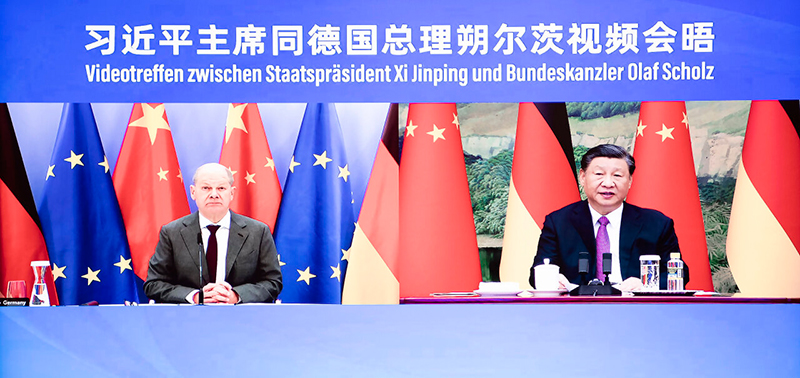 习近平同德国总理朔尔茨举行视频会晤