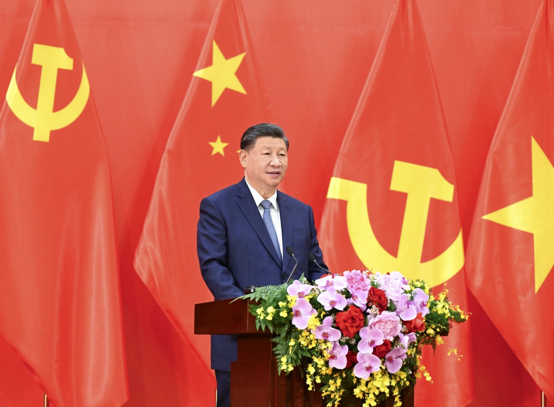 在热烈的掌声中,习近平发表题为《赓续传统友谊,开创中越命运共同体建设新征程》的重要讲话。