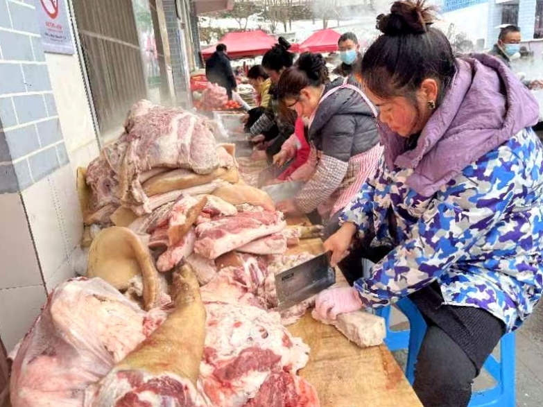 灾情发生后,镇雄县迅速组织人员转移群众避险,塘房镇凉水村周边村社的年轻党员和村民纷纷自发帮忙,干群齐心做好风险区域转移群众的食宿、取暖、热水供应等保障工作。图为该县凉水村和平小学老校区临时安置点的操场上,志愿者们正忙着做饭,洗菜、切肉、炒菜有条不紊进行。(杨文佳 摄)