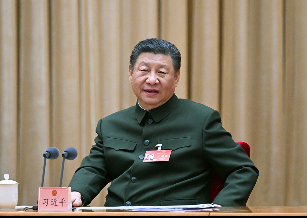 3月7日下午,中共中央总书记、国家主席、中央军委主席习近平出席十四届全国人大二次会议解放军和武警部队代表团全体会议并发表重要讲话。新华社记者 李刚 摄