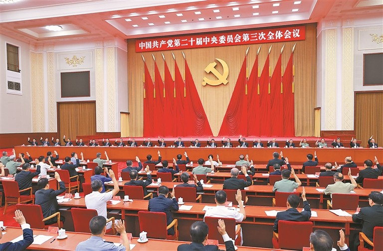 全会听取和讨论了习近平受中央政治局委托所作的工作报告,审议通过了《中共中央关于进一步全面深化改革、推进中国式现代化的决定》。习近平就《决定(讨论稿)》向全会作了说明