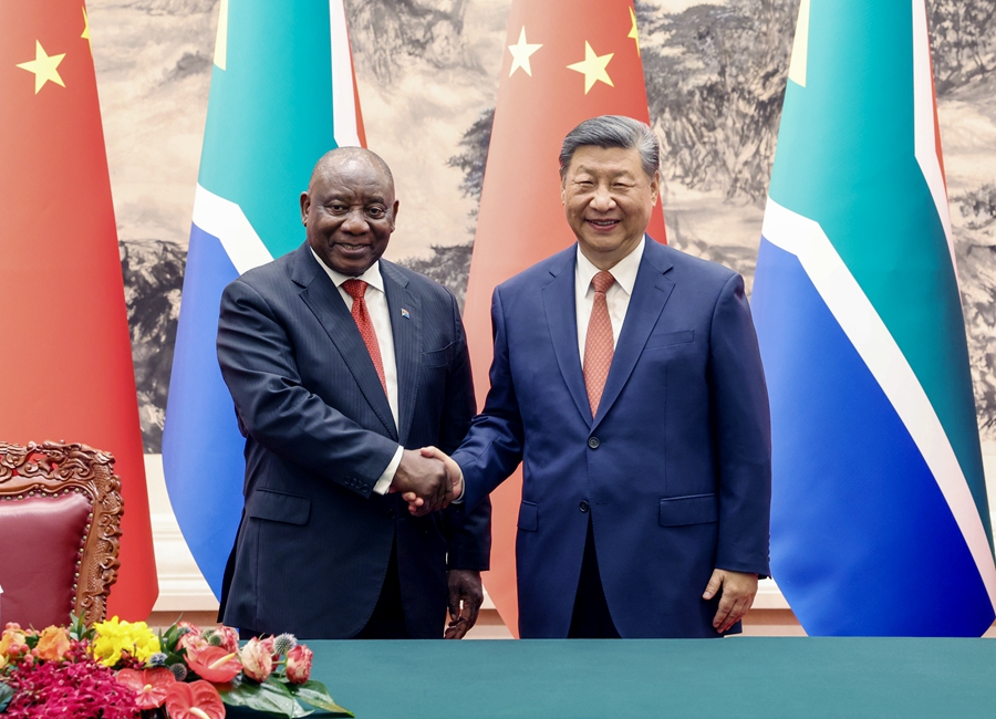 习近平指出,中国同南非的友好源于争取民族解放的肝胆相照、推进国家发展建设的相扶相伴、追求国际公平正义的团结协作。今年是中华人民共和国成立75周年,也是新南非成立30周年。尽管国际形势风云变幻,中南两国追求现代化的使命没有变,推动中非合作的志向没有变,完善全球治理的愿望没有变。中南加强团结合作,符合两国人民共同期待,契合全球南方发展壮大的历史进程,具有重要的时代意义和世界影响。