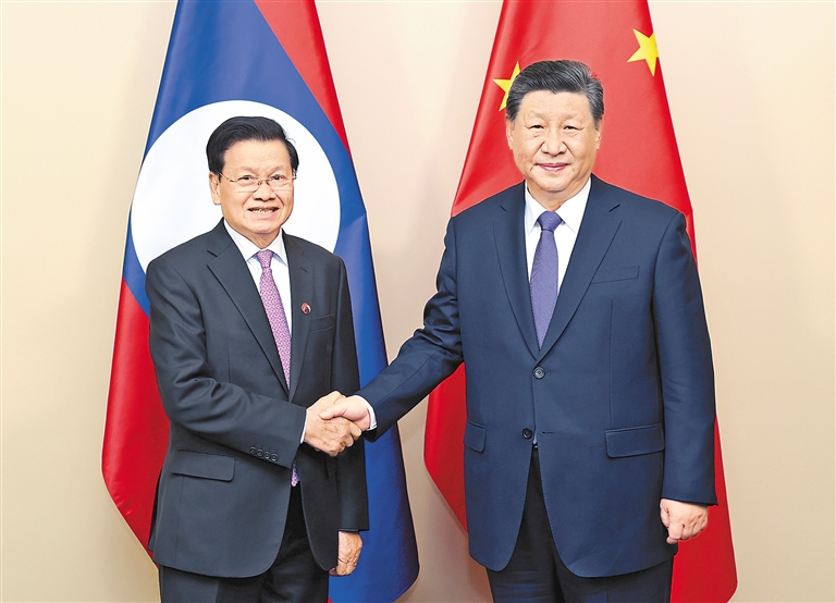 习近平指出,去年10月,我们就深化中老全面战略合作达成重要共识。一年来,两党两国各部门各地方积极落实,推动互联互通、经贸投资、人文交流等领域合作取得丰硕成果。作为社会主义同志加兄弟,中老关系在中国周边外交中具有特殊重要位置,始终走在构建命运共同体的前列。无论国际形势如何变化,中国永远是老挝可信赖的朋友和伙伴。中国正在以高质量发展全面推进中国式现代化,老挝也处在国家发展振兴的新阶段。中方愿同老方巩固战略互信,深化务实合作,推动中老命运共同体建设持续走深走实。