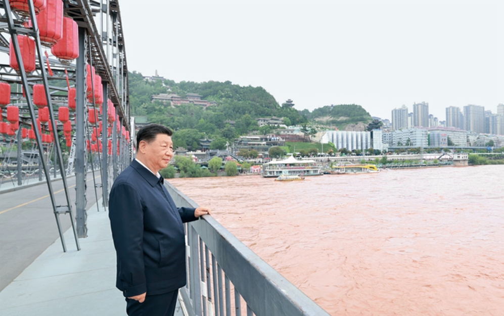 2024年9月10日至13日,中共中央总书记、国家主席、中央军委主席习近平在甘肃考察。这是11日下午,习近平在兰州中山桥上远眺黄河。 新华社记者 王晔/摄