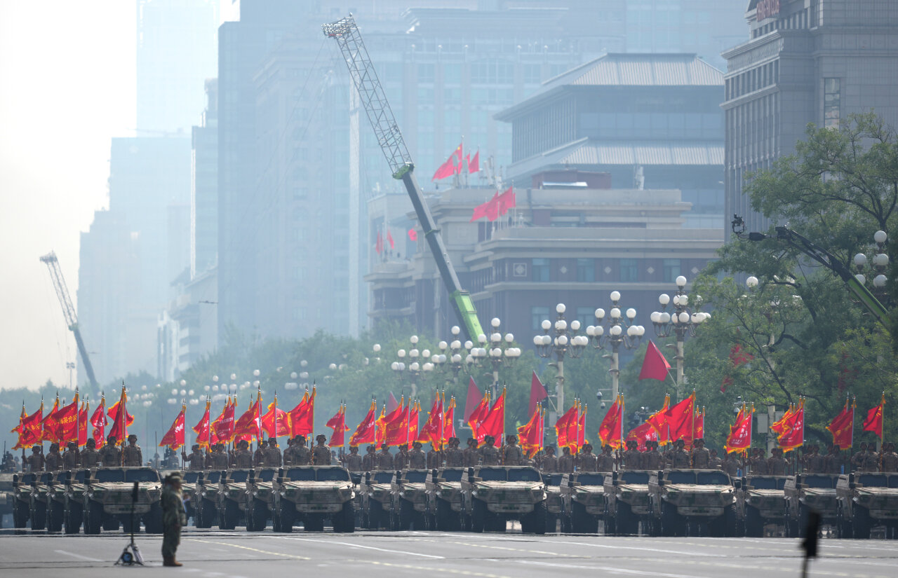 9月3日,纪念中国人民抗日战争暨世界反法西斯战争胜利80周年大会在北京隆重举行。这是战旗方队接受检阅。新华社记者 刘潺 摄