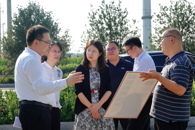 图为李海燕(左三)与相关部门同志在济南新旧动能转换起步区,现场推动解决某项目建设过程中遇到的“中梗阻”问题。资料图片