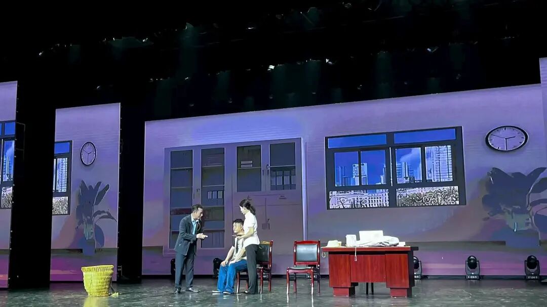 巧家县深挖本地资源,打造特色廉洁文化品牌,让廉洁文化接地气、入人心。图为巧家县本土党员干部在昭通市第六届新剧(节)目展演现场演绎廉洁小品《送不出去的礼物》。(张光茂 摄)