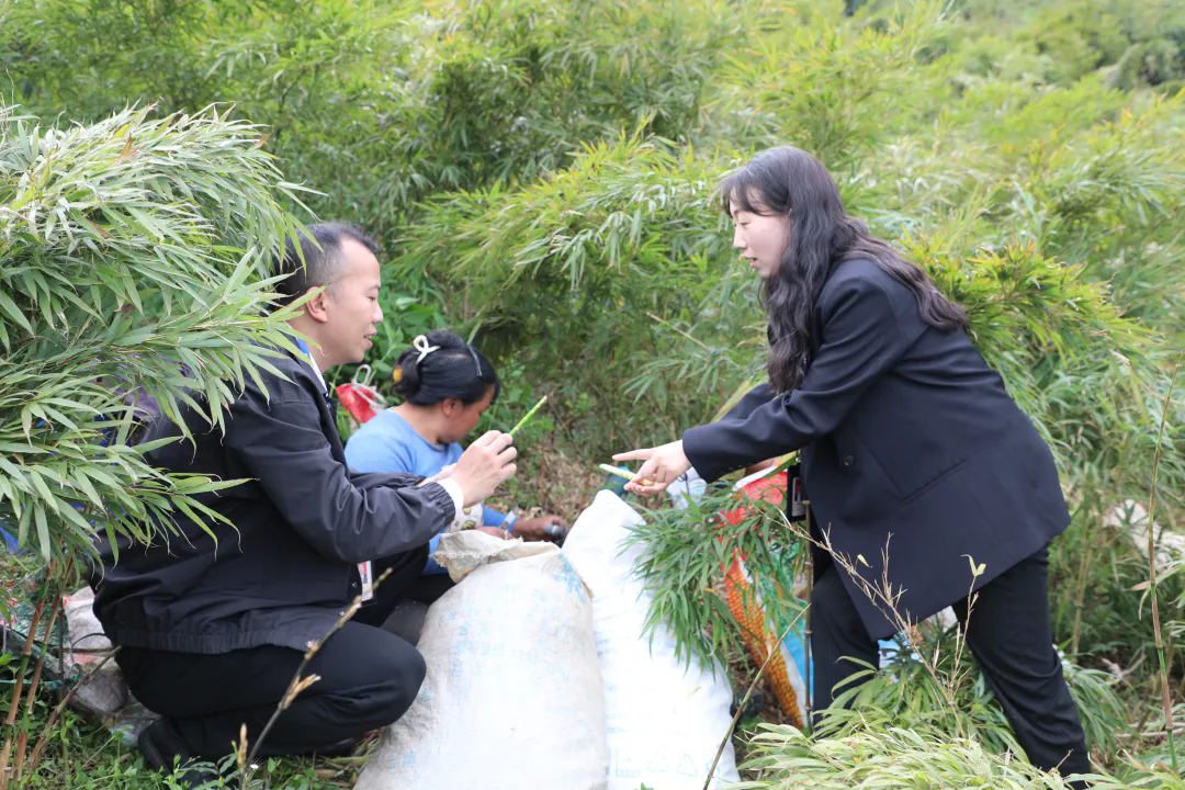 大关县纪委监委聚焦竹产业发展过程中责任、政策、工作落实情况开展监督检查。图为该县纪检监察干部到木杆镇竹笋采摘现场实地走访了解。(唐睿 摄)