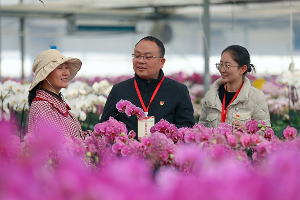 云南省陆良县纪委监委将花卉产业发展纳入重点监督任务清单,组织纪检监察干部深入花卉产业基地走访调研,与花农、企业负责人面对面交流,倾听诉求心声、摸排问题线索。图为该县纪检监察干部在大莫古镇戛古村花卉基地走访,了解产业发展现状及优惠政策兑现等情况。(云南省陆良县纪委监委 陆子澄 摄)