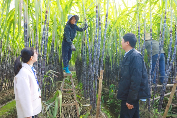 广西壮族自治区柳城县纪委监委紧盯乡村振兴特色产业发展重点环节,把监督嵌入甘蔗产业发展全过程,围绕惠农政策落实、产业项目实施、资金管理使用等方面开展监督检查,以靠前监督推动解决困扰、制约特色产业发展的突出问题。图为该县纪检监察干部深入东泉镇对河村实地走访蔗农,了解相关职能部门责任落实和履职情况。(广西壮族自治区柳城县纪委监委 李娜 摄)